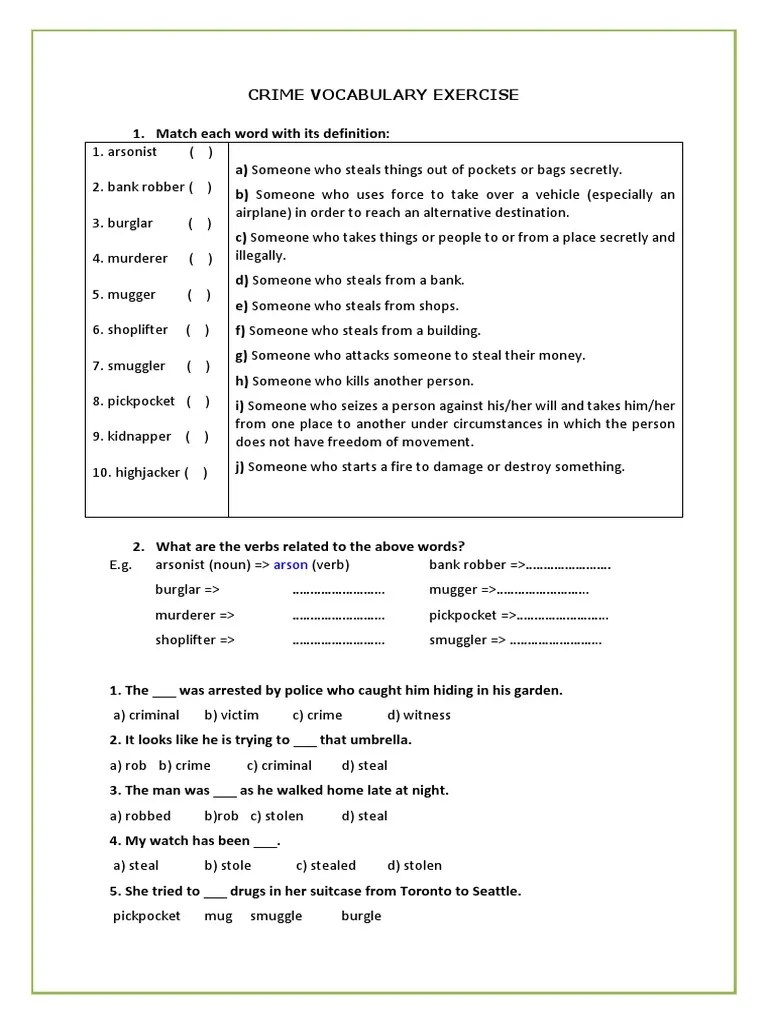 Locating free Types of crime vocabulary exercise can be straightforward and convenient, you might use the internet browser and check out online platforms that excel in offering free resources. Be selective about the websites you explore, opt for reputable websites that supply top-quality, accurate files.